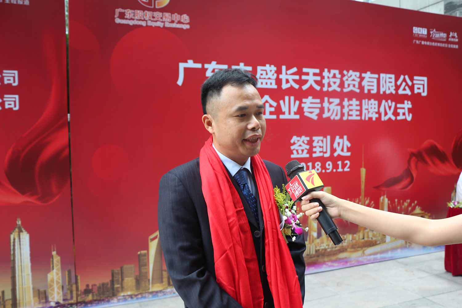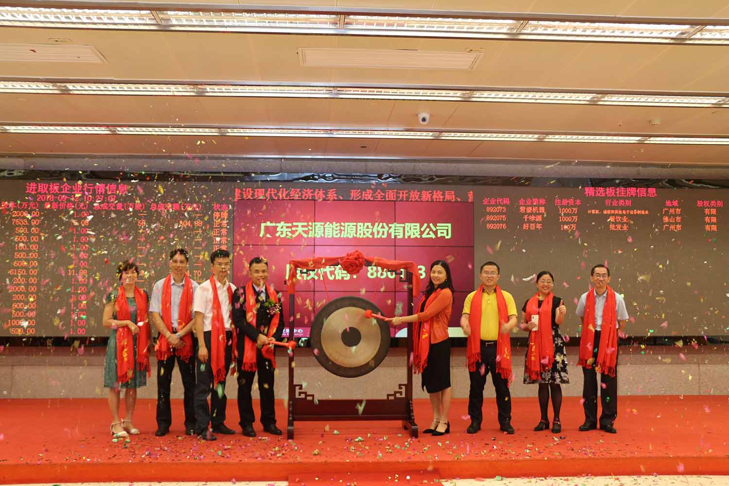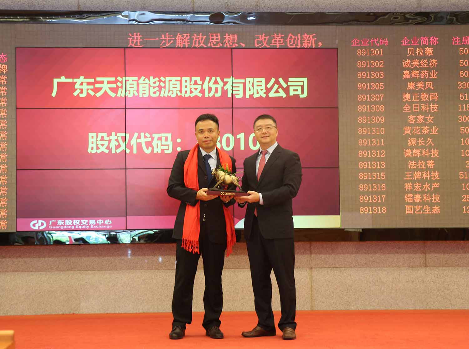 在廣州市股權(quán)交易中心掛牌儀式上,各代表上臺(tái)發(fā)言。集團(tuán)董事長(zhǎng) 邱炳江 先生在臺(tái)上發(fā)言,著重介紹了本次成功掛版的集團(tuán)下屬子公司 — 廣東天源能源股份有限公司的經(jīng)營(yíng)業(yè)務(wù)范圍,未來(lái)公司發(fā)展規(guī)劃以及業(yè)務(wù)特色等。