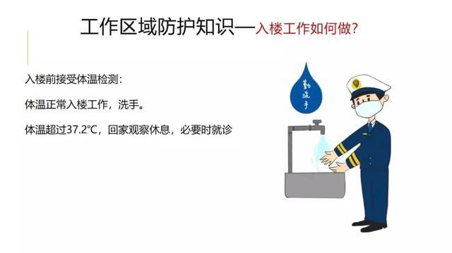 進(jìn)入辦公樓前自覺接受體溫檢測,體溫正常可入樓工作,并到衛(wèi)生間洗手。若體溫超過37.2℃,請勿入樓工作,并回家觀察休息,必要時(shí)到醫(yī)院就診。