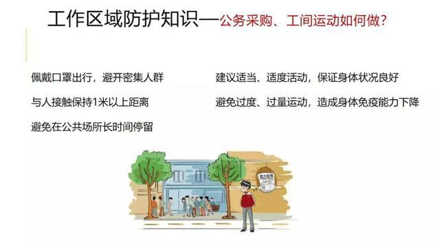 保持辦公區(qū)環(huán)境清潔,建議每日通風(fēng)3次,每次20-30分鐘,通風(fēng)時(shí)注意保暖。人與人之間保持1米以上距離,多人辦公時(shí)佩戴口罩。保持勤洗手、多飲水,堅(jiān)持在進(jìn)食前、如廁后按照六步法嚴(yán)格洗手。接待外來人員雙方佩戴口罩。